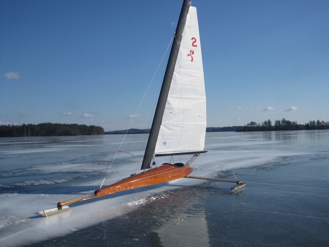 Maine has icy winters and ice breeds iceboaters. Iceboating in Maine dates back at least 100 years. The fishermen on the island of Vinalhaven took the small gaff rigs off their lobster “pinkies” and put them on runners for sport sailing on a tidal pond, and larger “stern steerers” were seen on many of Maine’s lakes. A small remnant of the Vinalhaven fleet still sails there.