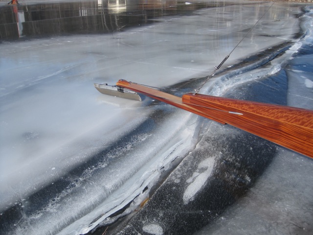 On the computer, our trusty spy, Denis Guertin, gives us the count-down from the the lucky Canadians further North: Some of the smallest ponds now have over 2? of ice, and folks are eyeballing Lac Becancourt near Thetford Mines, and especially Lake Abenakis, a high altitude lake near the border with Maine. So, with the possibility–however faint–of iceboating within the week, I begin the check-list I know and love so well.
