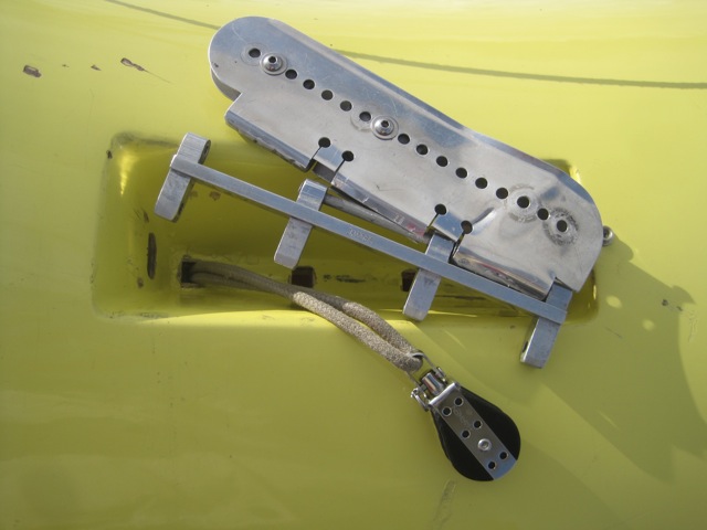 1. Get the iceboat down out of the garage cobwebs and plunk it, like an entitled pet, right in the middle of the workspace. For the next four months, it will be gingerly walked around. Once it’s down, I am reminded of various projects which were going on at the end of last season. There’s the rear-view mirror which I wanted to mount, so I could see what mischief Bill Bunting was up to back in my wake.