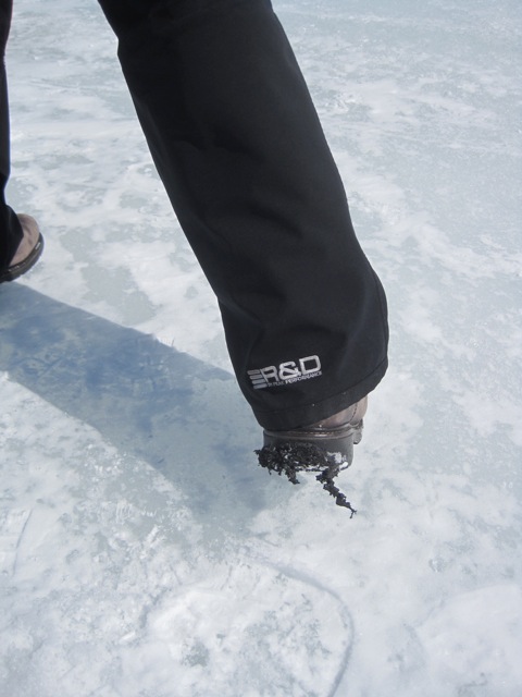 The edge is rotten of course, but the 14″ on the main plate remains. I guess the point of the story is to never assume anything when considering ice. Or, better yet, against all logic assume that the sailing will be great. And don’t forget the slush runners!