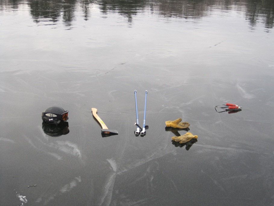 On the computer, our trusty spy, Denis Guertin, gives us the count-down from the the lucky Canadians further North: Some of the smallest ponds now have over 2? of ice, and folks are eyeballing Lac Becancourt near Thetford Mines, and especially Lake Abenakis, a high altitude lake near the border with Maine. So, with the possibility–however faint–of iceboating within the week, I begin the check-list I know and love so well.