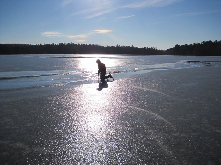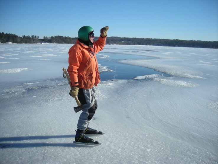 And every year, from the safety and softening of the off-season, I’m again amazed and a little scared at the risks we’ve taken in the past. Why haven’t we learned caution in the decades of seasons? Why were we there on Great Pond Belgrade absolutely surrounded by ice like swiss cheese near the little islands, hoping our skim-batts would somehow hoist us to solid ice somewhere else? And yet….will it be any different this year?