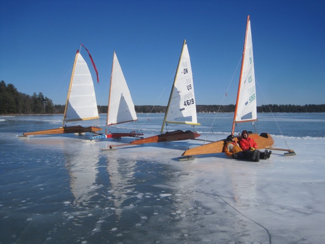 We are now some 100 members and sail less, partly due to less and later ice as a result of global warming over the last 20 years and partly due to less enthusiasm for regattas every sailable weekend. There is some sign of renewed enthusiasm for racing, at least informally, as a way to learn how to sail the sometimes puzzling ice boat. Despite 100 years of iceboat use there is still an undercurrent of new design. The all present and dominant design, the DN, is wonderfully portable and just fine for racing but short on creature comforts. As non racing sailing becomes more popular, the new designs try to combine respectable speed with a sit down out of the wind cockpit style. At the other end of the spectrum are scaled down designs for children. This sport remains a do it yourself activity unpolluted by Asian imports, so far.