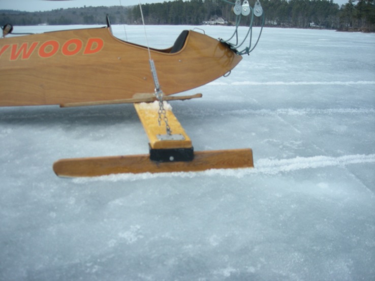 Sailing onto thin ice for some distance and breaking through is more complicated. It is important to get out, spread your weight out on the ice by not getting up, and claw your way back from whence you came on thicker ice. A moment or two for orientation is in order here. Extraction of the ice boat can be complicated needing ropes, boards, boats, etc. If an immersion suit is available and seems useful it should be used by someone familiar with its use, practice is needed, preferably in the summer. Preparation goes a long way here. Early and late in the season I often carry a 12 foot plank on the truck, usually used for getting on the ice at a thin edge. It would be very handy for thin ice rescue. A wind surfer hull with ping pong paddles, the paddles having spikes on the other end of the handle, is advised by Leo Healy and sounds pretty good. The NJ ice boaters have a tin “john” boat on retractable trailer wheels that is hauled to the ice by car and on the ice with an ATV. But the boat/trailer can haul all the regatta paraphernalia out to the race site including the wind break for the race committee, hot meals, lawn chairs, etc. More things to play with.