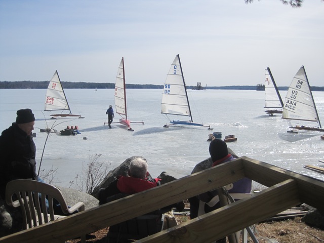 We had our 6 races in by 1PM, and then retired to Howard Garland’s deck to bask in the sun and tell lies. This spring iceboating is wonderful!