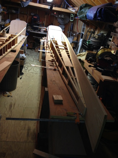 “I am finishing up a new plank for #242 using a tapered, lightened poplar core with Sitka skins (25 lbs.). Will see how it sails compared to the original ash, poplar, ash (heavy) plank I have been using.”
