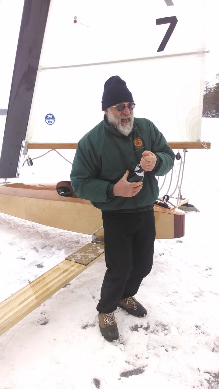 Paul Zucco drove all the way from Connecticut to Squam Lake, one of the only sailable plates in the region, to christen his new Whizz and go sailing. He’s been a’building for a couple of years so it had to be doubly sweet to both find the ice and then sail the boat. Paul certainly looks happy here:
