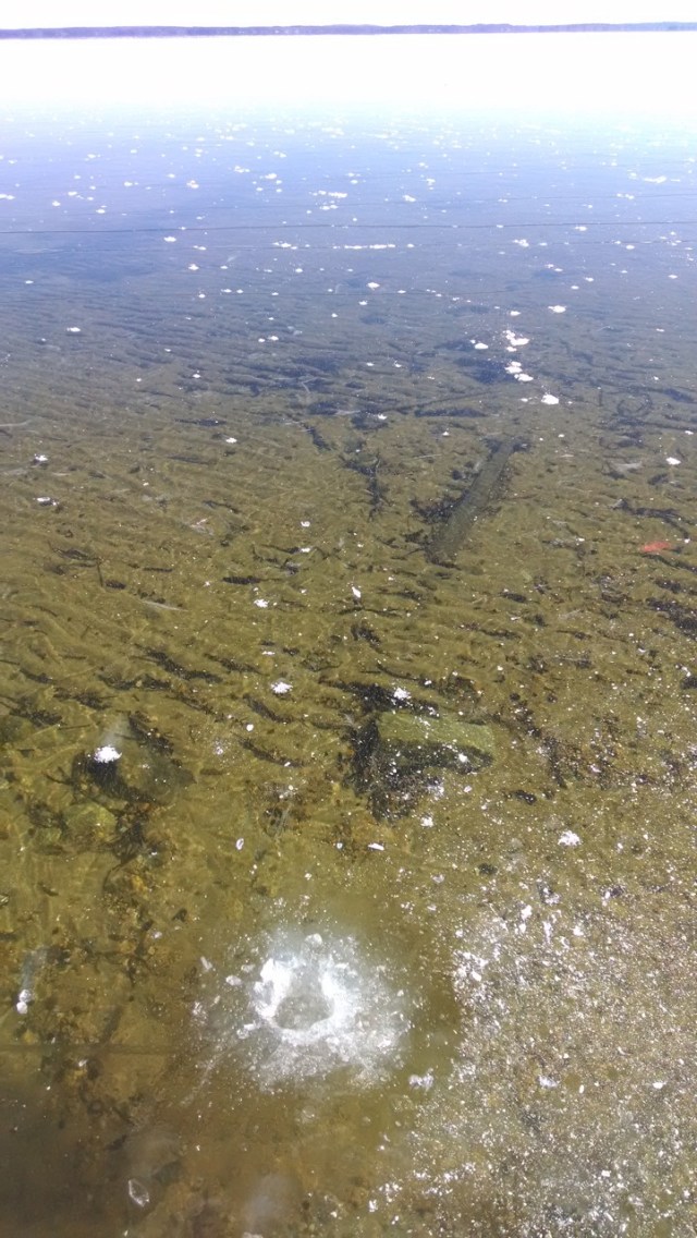 So, the least we can do is drive 99.7 miles to this clear plate of ice, studded with white bubbles, clear to the bottom, clear to the horizon.