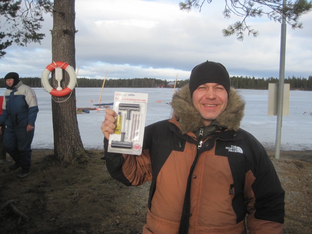 Between meetings and chit chat my Russian buddies and I went shopping, came back to a sunny spot out of the wind and enjoyed a terrific picnic lunch, watching the ice get darker and softer by the hour. It’s in the low forties here and the SW wind is not cold. Yesterday an ATV towing the trailer full of ballast back from the race pits (remember the long push home? The boats needed to be light) went into a slush pocket, was stopped, and a few seconds later went through in ten feet of water. Some of the sails were pulled out, but all the extra runners and ballast bags went to the bottom. This morning a diver was called and we hauled his gear to the site on a DN. He passed up all the hardware, separated the trailer from the ATV, and then led ropes around both. People were then able to haul the vehicles up, slide boards under, and slide them onto the ice.