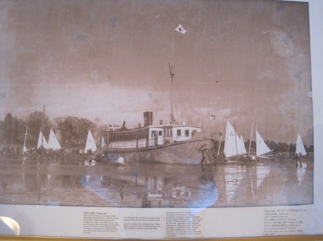 I forgot the best of all. This is the previous club house. Here name is Isabella and she was built in the twenties from ferro cement. They would anchor her in a cove and she’d freeze in for the winter. The club had a paid hand living aboard all winter who would keep the ship heated, and make meals and drinks on the weekends during the sailing events. The flag is the yacht club pennant, and you can also see the insignia on the smoke stack. Sure beats having lunch in the car!