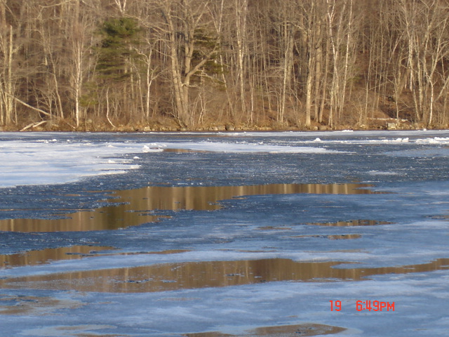 Here is the “Last Ice” around the corner from Lloyd’s beach. There was a fair amount of this stuff blown down my way, so although the lake was “Navigable” by Coast Guard standards the ice was not all out. My “Ice Out” time and date was Independence day April 19 at 3:47 PM (when observed from Rte 17). On the morning of April 19 there were a few independent patches of ice cruising around the lake in light and variable breezes, by afternoon only small pieces of old snow covered ice were jammed in leeward corners and by morning April 21 after heavy rains there was no ice seen anywhere, true ICE OUT. Long hot summer follows.