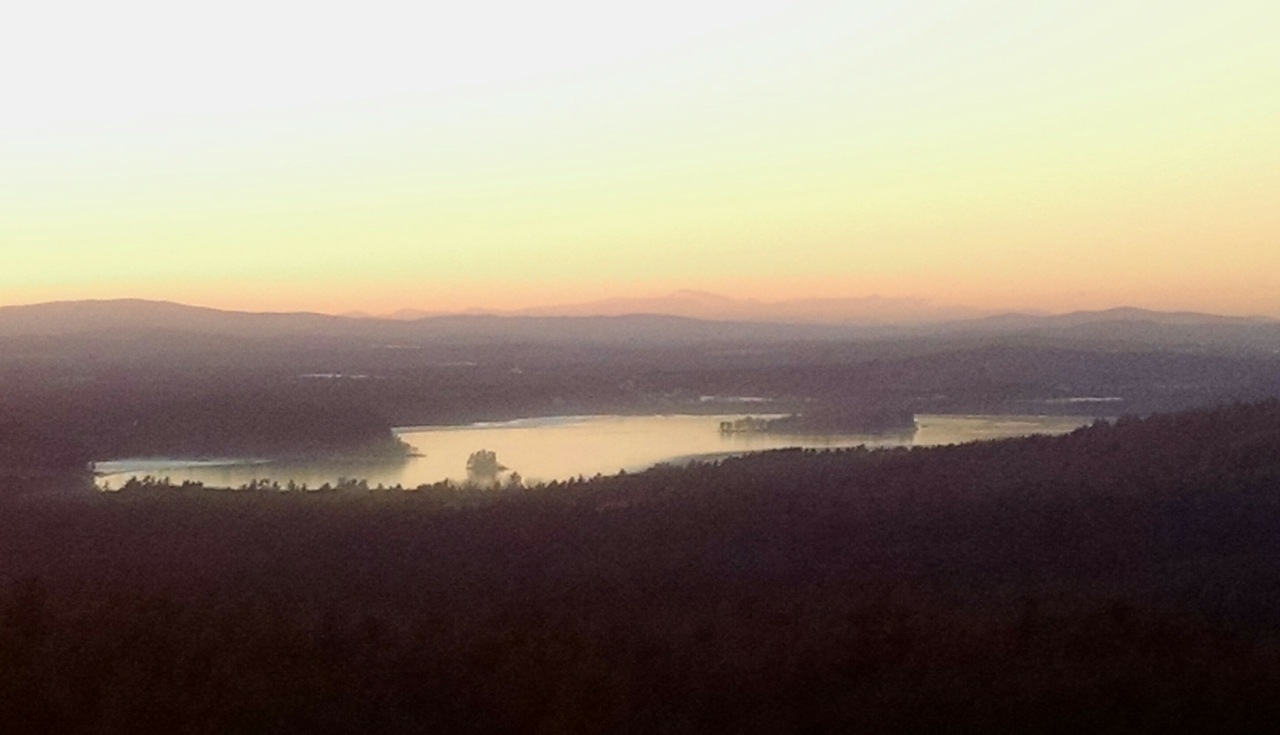 Sabattus Pond and Androscoggin Lake seen this afternoon from Mount Pisgah (isn’t that where the Promised Land was seen from?) are covered with new black ice. I will be looking at them in the morning before I go to Portland. I’m not sure the iceboating community is interested in either pond…but Sabattus is shallow and a good sized lake. I will be back in NH the rest of the week but might be able to travel for ice Wed on… (these waters are just east of Lewiston-Auburn —ed)