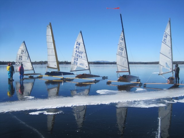 They are packed full with iceboaters tonight. The NEIYA is running regattas today and tomorrow. There is no snow in sight, and there will be sailing at least through Monday. Yesterday we probably had close to twenty boats, with more showing up by the afternoon. The Birches will have open space Sunday night and beyond. But if you do come, please co-ordinate with others so you don’t wind up there alone. This is not the place to sail off by yourself.