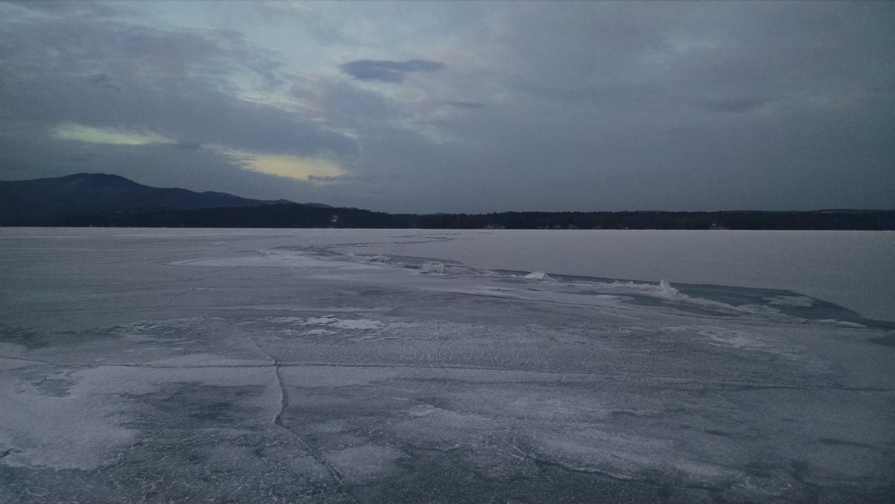 I skated 5 hours today from Leavitts Beach and from Melvin Village on Winni today. No snow today to speak of as of dark. Extensive pebbly 4″+ ice from Leavitts Beach. A few pressure ridges, a few holes out out past 3 Mile, but miles of similar ice observed past that..didn’t go beyond 3 Mile.