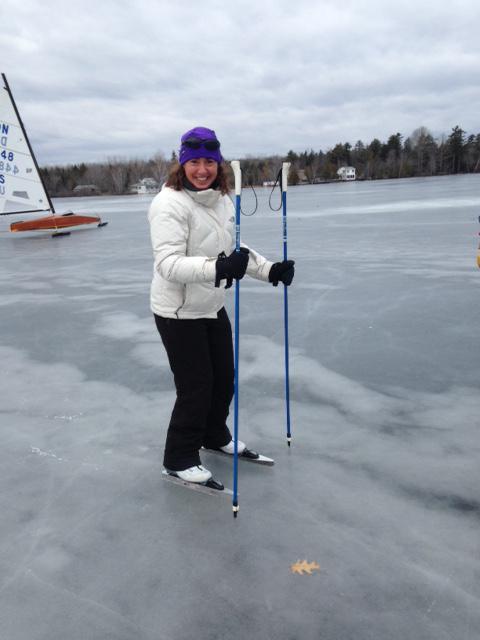 We also had David and Sharon from New Zealand, back for more winter fun. They rented snowmobiles from The Birches and took in a bit of trail riding. Dave’s frostbite nip from his immersion on Winni a few weeks ago is much better, and today on Pushaw we had them on ice skates. They took to it like penguins to fish and wobbled off by themselves for a romantic skate tour.
