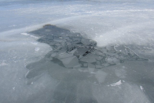 Broke through shell ice by 11:30 where in the early am you could cruise right over it. Every once in a while you could find a spot that was frozen over from the night before but was probably a hole from intersecting cracks, fisherman pointed out a couple and I found two more. These would swallow up a runner easily and crimp the day. I left after that as the wind picked up much more than forecast, gusty, it was very fast and too the point where I was getting nervous about going that fast and still try to get a good look at what was ahead. With the wind I think one could have sailed all day, the ice in the cove stayed sailable.