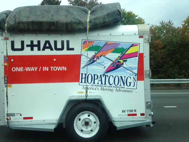 Some one from the design department at U-Haul must have see Kevin at some point: look at the sails. The artwork featured on the sides of their trucks and trailers are destination icons: lighthouses, redwoods, etc., but who could have imagined that Lake Hopatcong and iceboating would make the cut?