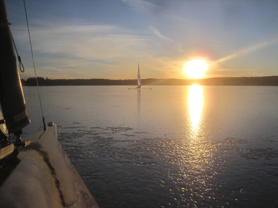 Picture yourself on this ice, in a huge gybe going 50mph. Yea, it was like that. Everywhere. Frank and Denis, Jory and Bunting, Fortier, Eric Anderson and Steve Madden scouting for a weekend regatta tba., Lloyd and Bob in cheapies, Scott and Doug in Skimmers. Smiles all around.