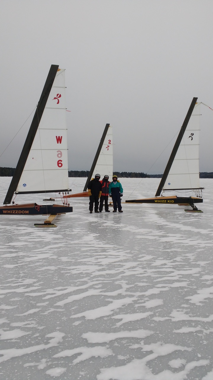 In spite of the light wind forecasts, sailors from far and wide are showing up to sample the joys of the wonderful lake. Just as Steve and James Lamb showed up the wind began to fill nicely from the NNW. It settled in at 6-8 which is plenty on this nice, smooth ice. A couple of boats got through the narrows, but didn’t dare take a chance on going further with the iffy wind. Bad call. When in doubt, go for it. Who knows: it might be worth a long walk home.