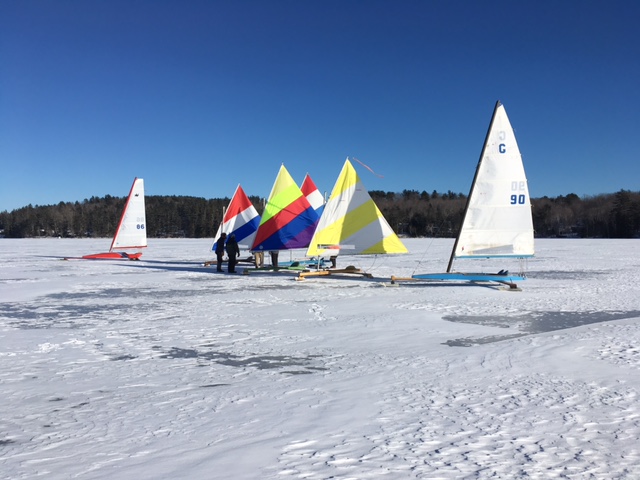 “Ten boats sailed a nice 20kt NW breeze today from Leavitts Beach. Lots of drag racing! A number of boats still on the ice hoping to sail Monday’s SW wind. Many big smiles today.”