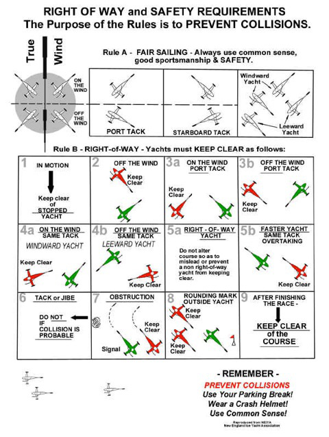 The “Right of Way and Safety Requirements” follow at the end of this article. Feel free to print the graphic, laminate it, and keep it in your kit.