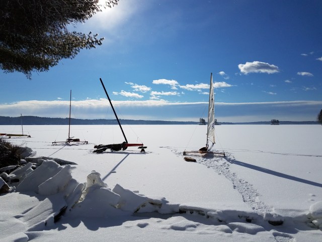 The wind promised for tomorrow is about the same that was promised today. Let’s hope they get it straight this time and it blows 10-12. Cold temps hopefully will keep the snow soft. Rumors of sailable ice on Champlain south of the bridge. Thanks to Breck Holladay and James Lamb for the photos.
