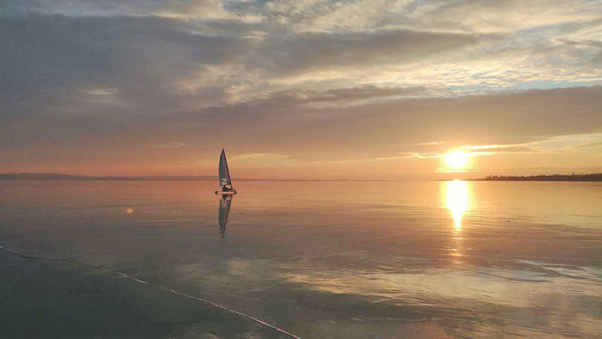 It’s a great deal, but what’s that have to do with Hungary? The DN European Championships are taking place there, racing starting tomorrow. This is a shot of the lake, Balaton, a couple of weeks ago. It’s a very big lake about halfway between Trieste and Budapest. Race iceboats: see the world!