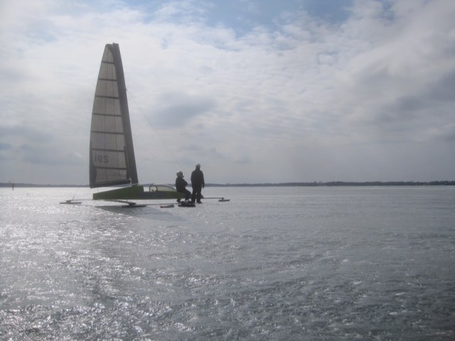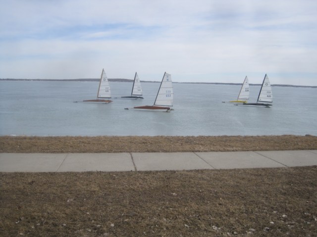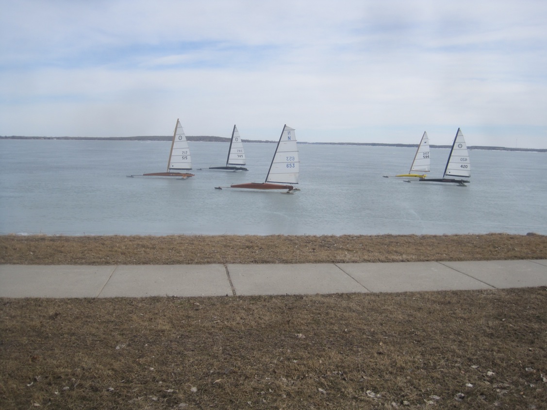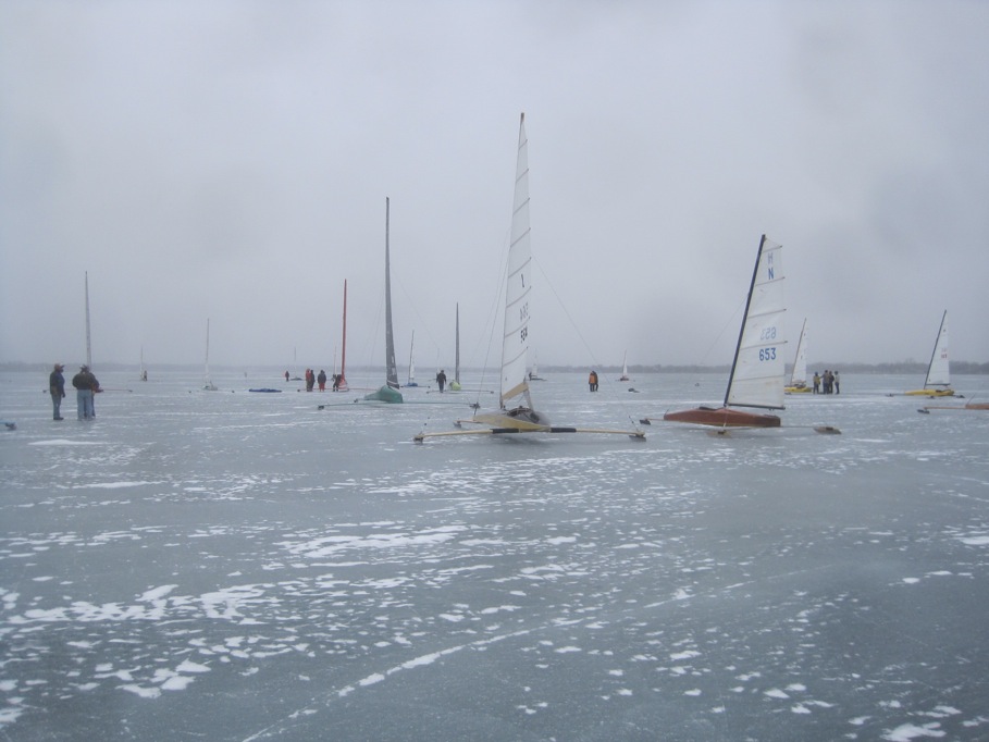 The rest of the fleet trickled in throughout the day, setting up boats. A few of us sailed out to scout the ice. Now, for much of the country this has been a challenging season, so one needs to admire the courage it took to call on a regatta on grade 2 ice. It was actually closer to a 3 on the race course, but no matter. It worked out just fine for racing, but one wouldn’t have been happy cruising.