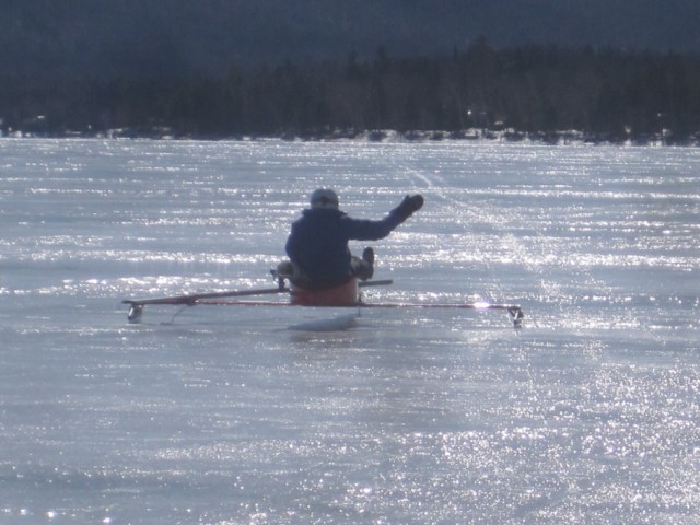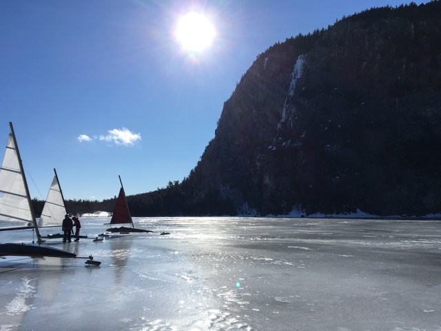 So this is the thing about the place where racing and cruising meet. We call a race on with some kind of informed intelligence, the grapevine humms and people show up to scout the ice. There are old and new friends in the pits, sailing and scouting a course, a general sense of excitement and dread, and then a rowdy table for dinner. Next day maybe it’s a bit cold and windy but you go for a sail anyway, and talk iceboats at lunch and in front of the fire. And another, fuller, even rowdier, table for dinner. Forecasts are discussed, and the search for a good one goes on and on. You sail a bit more in the morning, gauging conditions and discussing the possibilities. Maybe you race, maybe you don’t, but by the end of the weekend you’ve had a great time on the ice. And that’s the bottom line.