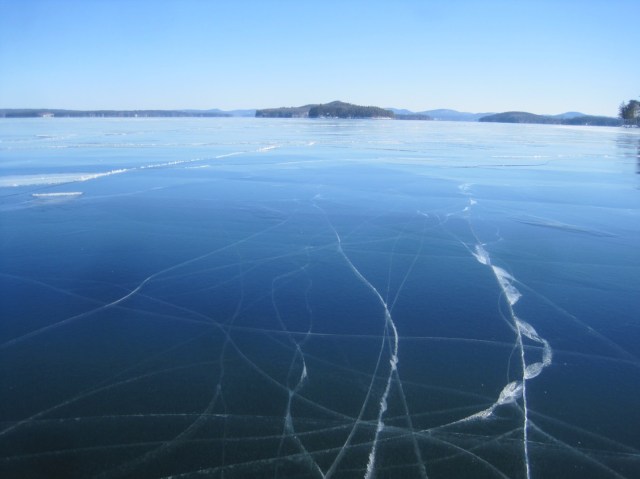 Some weather has come and gone in the past few days, but the plate is intact and as nice as ever. The larger Lac Abenakis is now frozen. Denis sends this report: