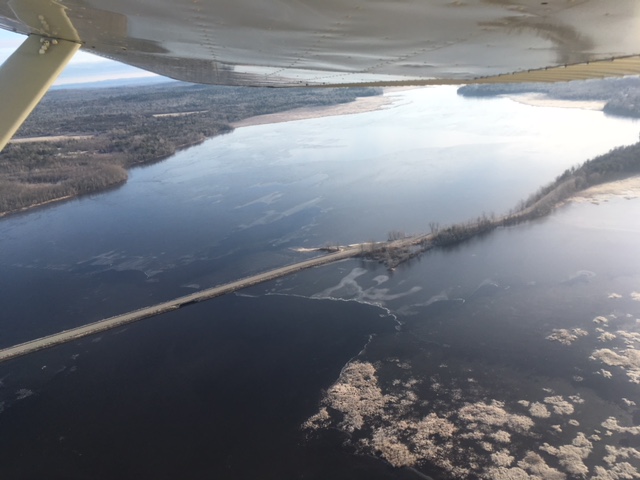 The bit by the bridge is open as usual. The forecast for this coming week predicts a battle of the elements, ice against fire and falling frozen water. Bryan, if you’d like to go have a look it would be nice to know how thick it is. Dave Godin didn’t dare to land the plane to get a closer look! Thanks for the pix Dave.