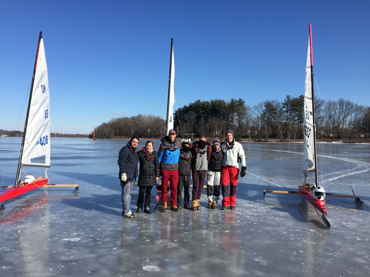 “Five students and two researchers from MIT went to Batterson Park Pond. The pond did not suffer the negative effects of snowfall that many of the surrounding lakes suffered. The four boats from the MIT build-class were used. Two of the students had never sailed an iceboat before and were instant fans of the sport.
