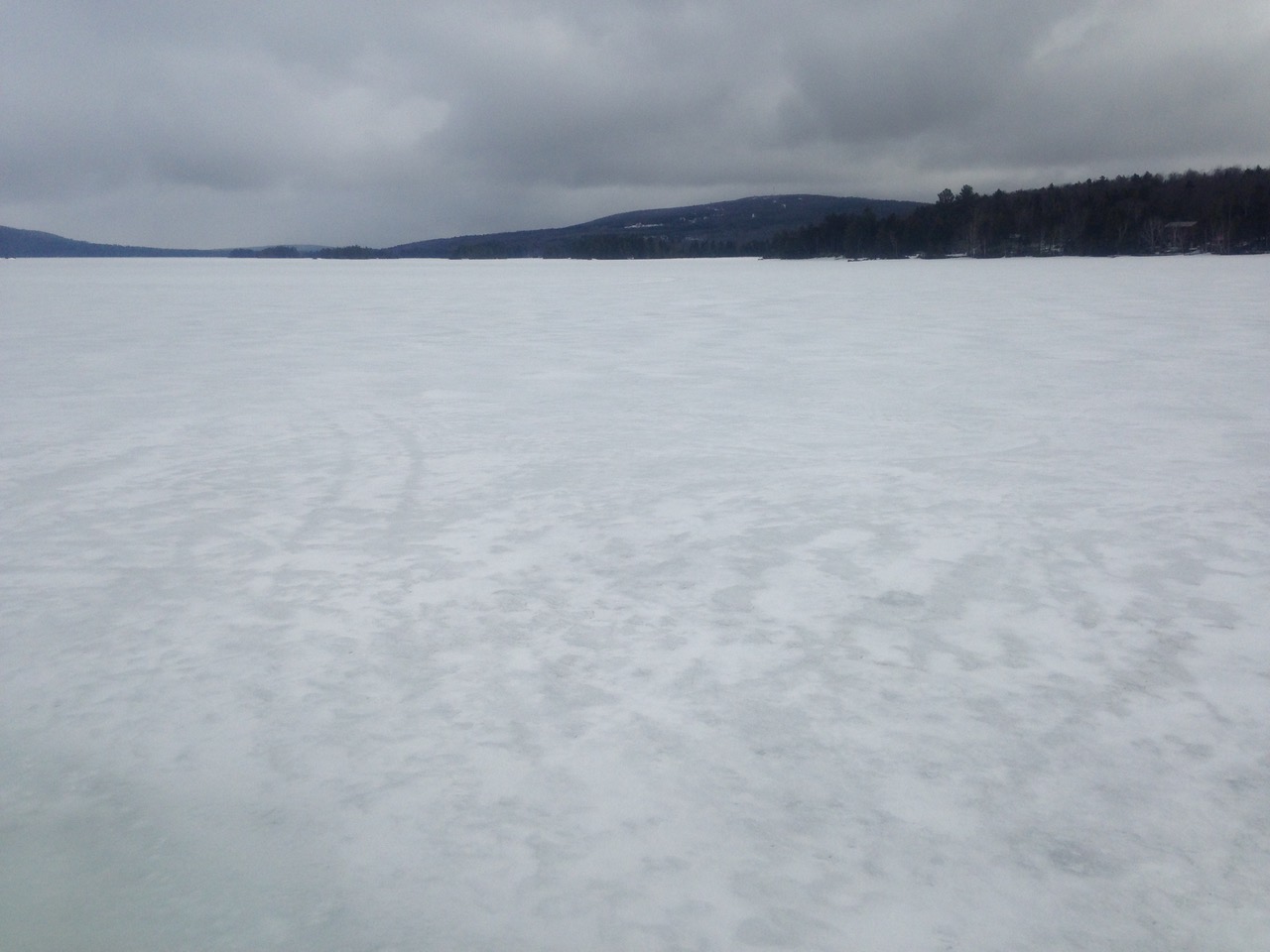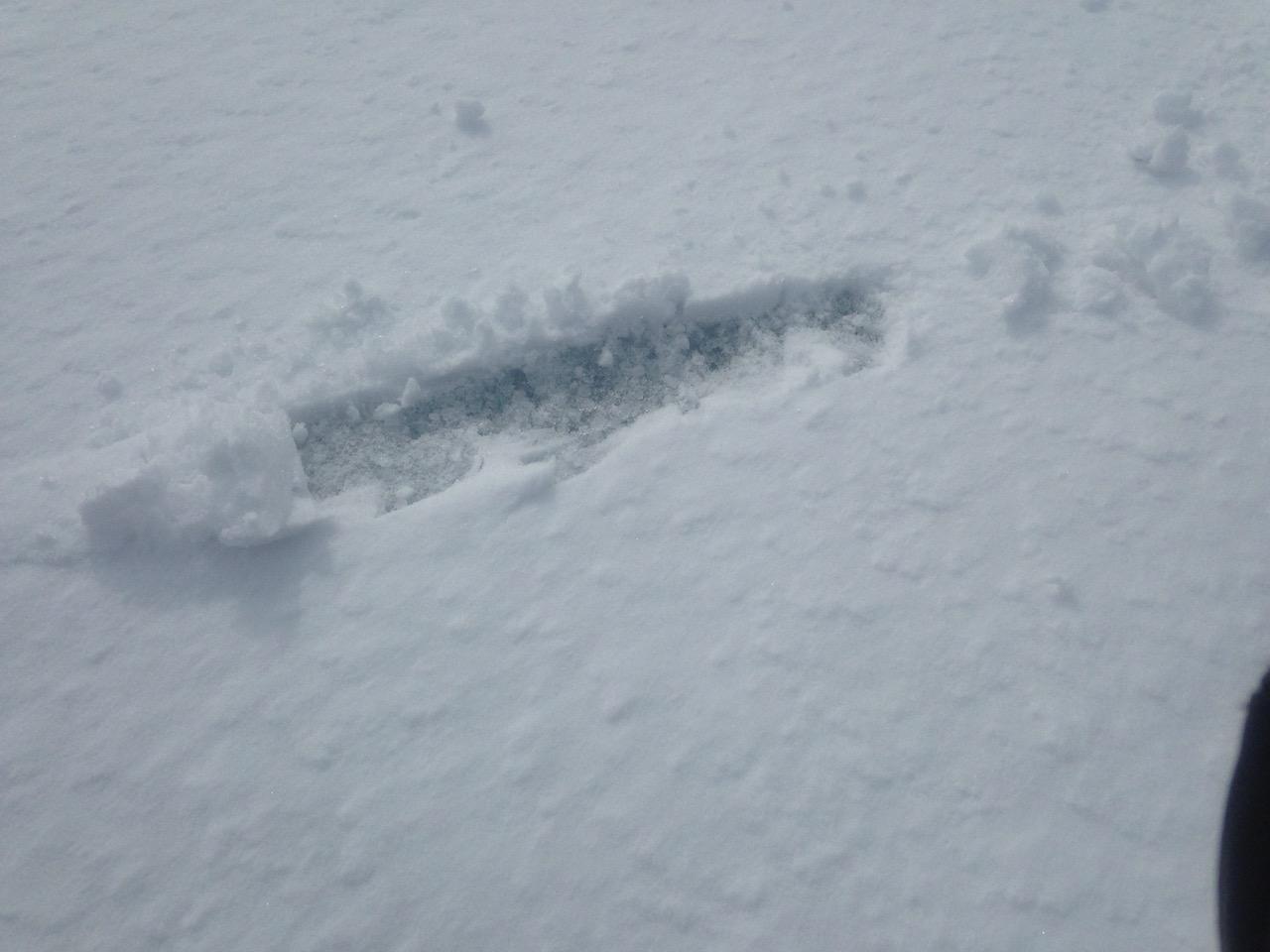 Up close, there’s a thin layer of fresh snow in places but the sun will be working hard on that all day. Will be interesting to see how it turns out by morning.