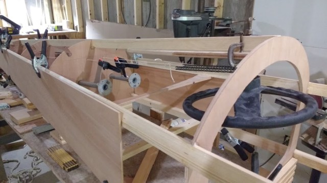 And now the planking begins. An iceboat all framed up is a beautiful thing and a joy to behold, but time marches on. In less than a week the days begin to get shorter, and we all know what that means!