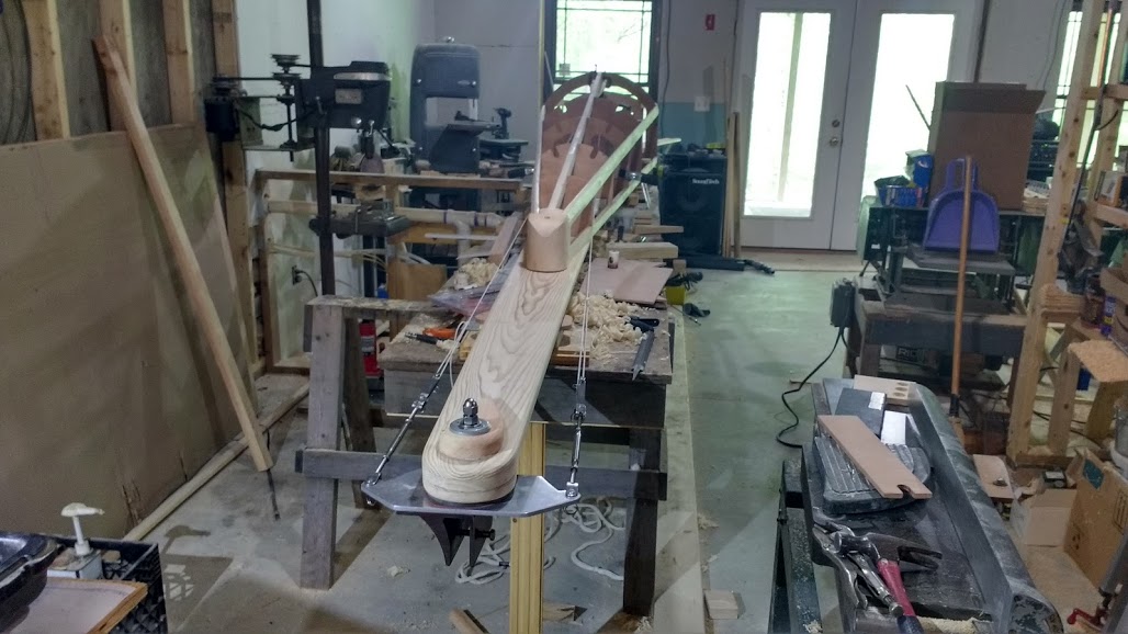 On those days when the tide’s not right for catching clams, Bryce is making good headway on his Whizz. It’s tempting when she’s all framed up to go ahead and start the planking but it really pays to do all the inside work first.