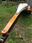 Very little use, like-new condition, two seater. Hull #470. Has harken covers for fuselage, mast and plank, and three sails. One radial (red), one older kevlar, and one like-new Quantum dacron with RBS battens. Batten deflection perfect. Has a tool kit with spare bolts, a sharpening stone kit and a spare side shroud. Trailer is from 2010 and is in excellent condition with like-new tires, frame is still shiny underneath. Sarns black 30” plate runners in Harken runner bag. The mainsheet is tapered. Also comes with three Joffa helmets, one average size and two smaller ones. Complete set of cockpit upholstery showing very little wear.
