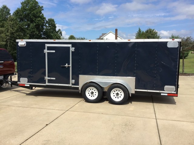 Four place enclosed iceboat trailer, can carry four boats up to 18 feet, has slide in compartments for masts, planks and sails, extra storage area for runners and extra parts. Brakes on all four wheels, tires have 90% tread. Barn style doors on rear for easy unloading and loading, slide out/slide in. Two side doors for easy access to storage area.