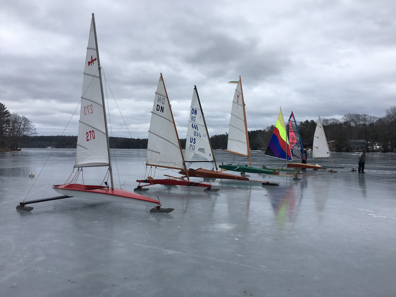 There were a few more boats that didn’t make the line up; probably about fifteen in all. The SE wind reversed the sailing directions for the lake, which is always fun. The ice is about like what you see here all over the south end, eight inches reported by a nearby fisherman. No drain holes or new pressure ridges. About how we left it last week.