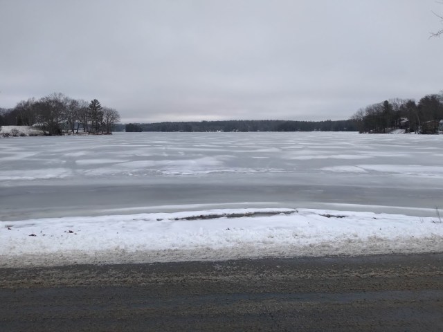 Bryce sent this around lunch time today. It certainly looks possibly sailable, but then a late afternoon snow squall blew through the area and we don’t know how much fell here. A scouting party has been dispatched for tomorrow AM to ascertain the damage. ‘Tis the season of shades of grey. Stand by.