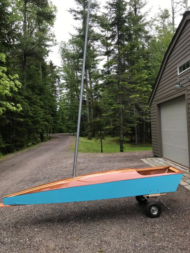 It bends much easier than the angle and fairs nicely into the forward curve of the body. The larger angle should support the boat better on the slush, but will there be enough “bite” to prevent excessive leeway? A big Yankee had a set of these some years ago and was apparently very satisfied with their performance. This set is for Breck Holladay’s Nite so we’ll have a good report sometime around next April.