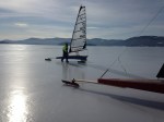 There was a professional photographer on site who I was able to make contact with and hope to receive some pics from, (for a later post). By 3:00 wind was dying and the ice on the small 3” cracks which was 5” in the morning was now down to 1/4” a DN sailor directly in front of me hit one parallel and dropped a runner through (no damage no harm) my signal to call it a day. Most people were starting to pack up and pull off the ice in anticipation of the change in weather. A few boats were planning on sailing the morning wind today as the forecast was for good in front of rain.