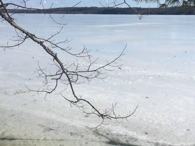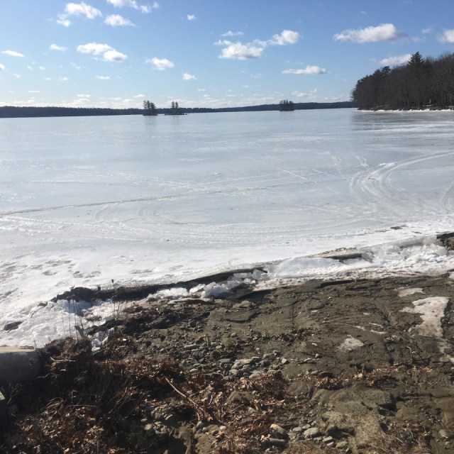 The lake is good to go. Thirteen inches of ice with a grade 6 surface. The deep ruts from last time have not vanished, but they have been knocked way back, especially in the narrows. The pressure ridge at the top end of South Broads has receded and the place we crossed last time looks very smooth. Launch is tight to the shore.