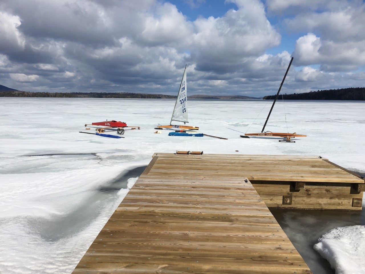 This is a very special achievement for the club because our first day sailing this season was November 17 at Plymouth Pond. Sailing today, April 17, means we have had a full six month iceboating season. Not only that, but until we hear anything more from Thunder Bay, Ontario we may have Mike Madge beat!