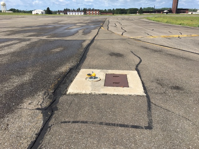 The runways are lined with little blue lights. Many are broken and might puncture a tire. They are easy to see being set on concrete, and you can go behind them if you are stretching your line to lay the next mark but be advised. That’s all I’ve found so far, but there may be more.