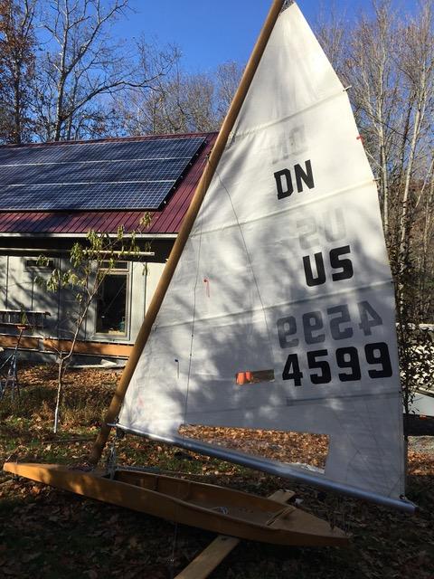 Here are two nice DN’s in good shape and ready to go, runners aligned to a hair’s breadth. Both have ash stripper masts flying Bossett sails with foam core tapered battens and aluminum booms. They also have braided and tapered sheets, and are steered with sliding tillers.