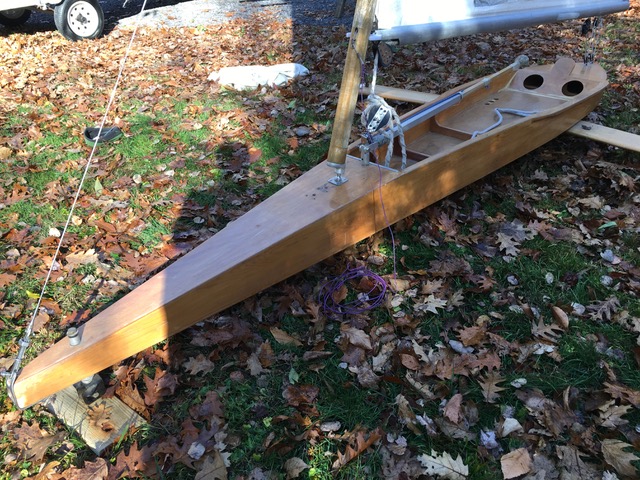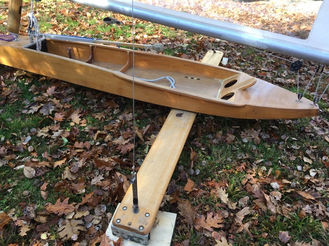 The Varnished fuselage is max width, also with profiled plank mounted with Sarns chocks holding 30″ bullnose plates.