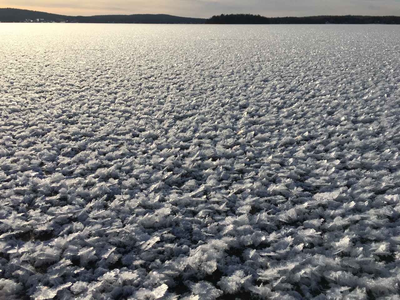 Black ice is breaking out everywhere after a few days of good solid cold. Chickawaukee has a half inch as does Great Pond, Unity Pond and Messalonski.