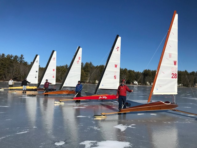 Mother nature threw us a bone today with above forecast winds, full sun and thirty degrees. March sailing mid winter, but no one was complaining. In addition to the rack of Whizz below, there was a clutch of classic DN’s, Lee’s Gambit and Randy Rice with Back Fly Hammock. Black Fly 1 is still for sale, by the way.