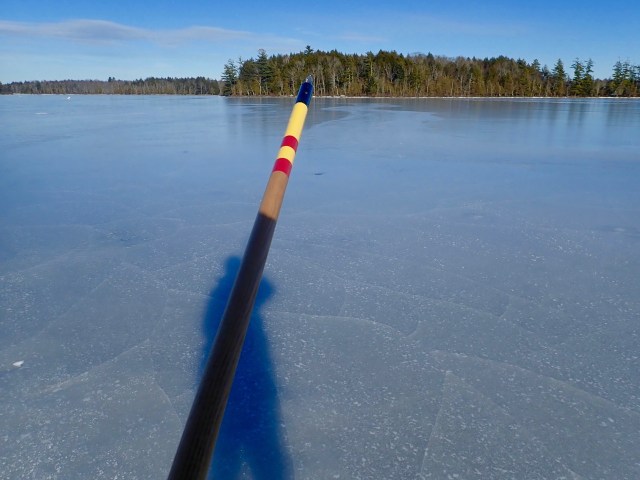 So where does that leave us? The wind is marginal the next few days so the plan now is to sail Great Pond on the weekend. Nice winds promised, and the ice will thicken in the cold nights. Hopefully the entire lake will be good to go. Hundred Mile Race anyone?