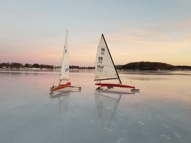 Lake Mahopac, NY (Putnam County). 2 DNs sailed yesterday afternoon and scouted the entire lake. Ice surface is good, there are no hazards other than the typical bubbler issues. There are areas where quads and snowmobiles rutted things up but plenty of good ice elsewhere. Surface for the most part is hard grey snow ice and should be fine for big boats too. Dead calm this morning and only 2-4 predicted for today. Local weather has us getting 1-3 inches and others predicting 3-5. Just a dusting and not snowing at all as of now and it looks like it may stay south of Mahopac. Launch sites are both marinas; Mahopac Marine in town by Anthony’s Deli (now the Brooklyn Cafe) and McDonald Marine behind the Mahopac Library. Also a good new location behind the Tompkins Mahopac Bank also in town and close to food. BTW as of this past Monday night we thought we were done for the season (6″-8″ of snow over very little base), Tuesday’s weather was questionable and Wednesday sailable ice. There is an Ice God. I will post again later as this storm goes through. Hoping to get a good weekend out of it.